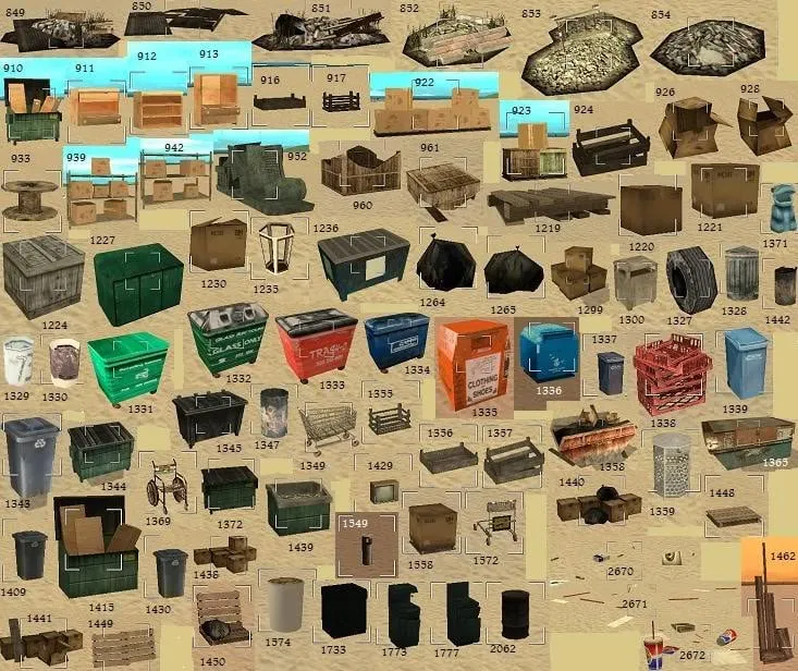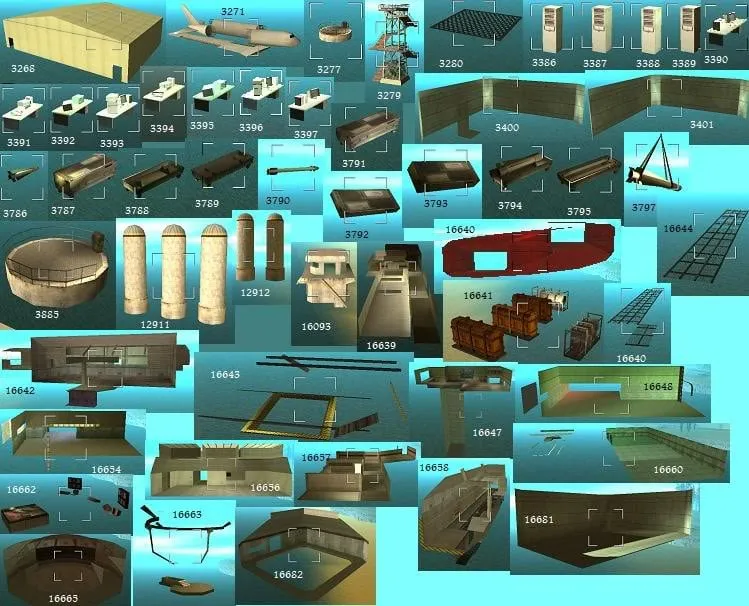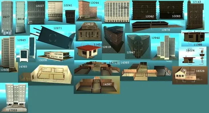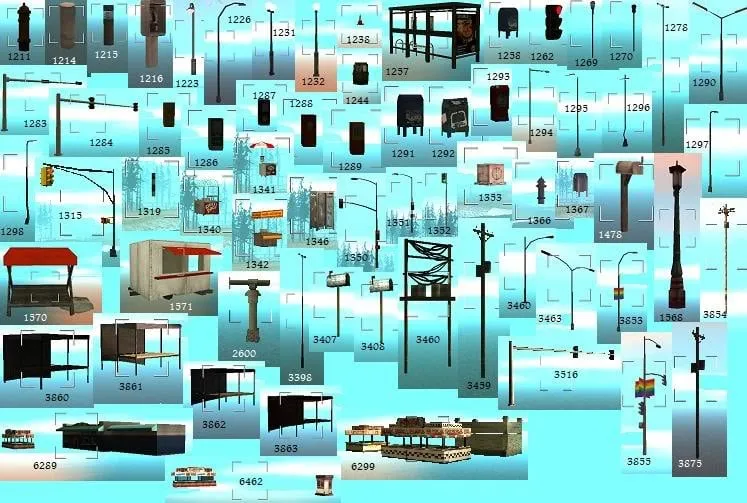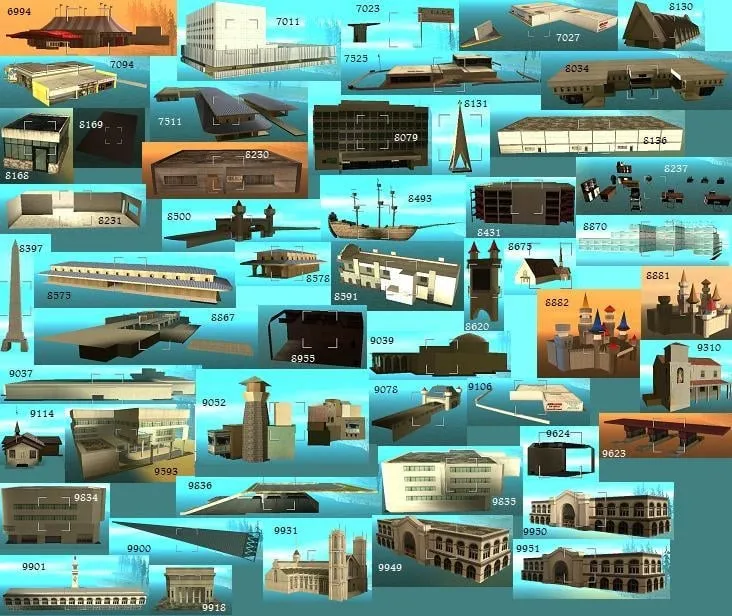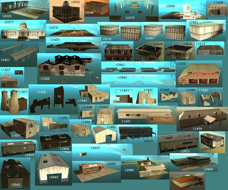 This page displays a subset of object model IDs that can be placed using the Map Editor, createObject and createBuilding.